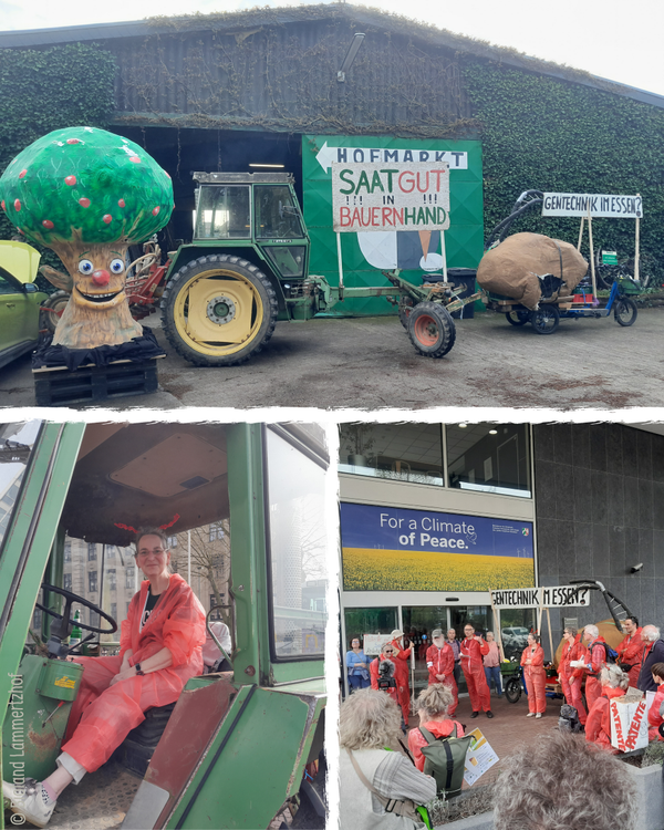 Gefühlte 100.000 Zuschauende hatten wir bei der Demo am vorletzten Wochenende in Düsseldorf, denn bei dem tollen Frühlings-/Sommerwetter waren soooooo viele Menschen draußen! „Wir“, an die 100 Menschen zum Teil in roten STOPP Overalls fielen schon auf, zusammen mit der langen Leine, an der die gut 1000 Unterschriften gegen das neue GENTECHNIK Gesetz aufgehängt waren. Auch die beiden Traktoren und die Lastenräder mit Plakaten und dem “Tilly-Baum” waren ein beliebtes Fotomotiv. Wenn dann jemand auch mal im Internet nachgeschaut hat “Gentechnik: betrifft mich das auch?” haben wir doch schon was gewonnen.