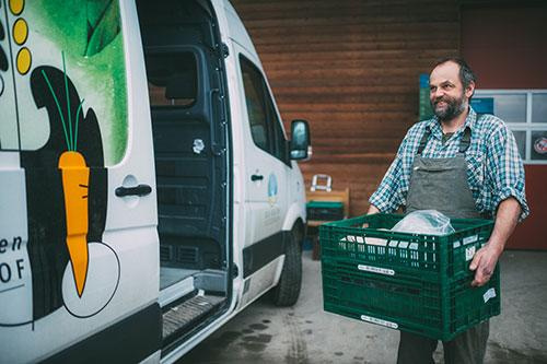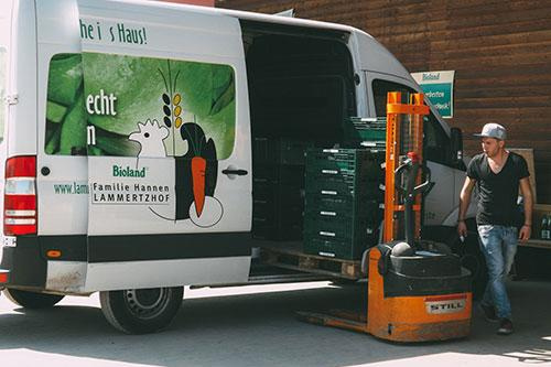 Beim Obst und Gemüse erkennt man auf einen Blick, welche Produkte von uns, aus der Region oder dem sonstigen Naturkosthandel stammen. Hierfür bedienen wir uns farbiger Schilder im Hofmarkt – im Online-Shop sind die Produkte entsprechend zusammengefasst bzw. an der sogenannten „Regioflag“ erkennbar. Als regional werden zuliefernde Betriebe gekennzeichnet, die sich in einem Umkreis von weniger als 100 km vom Lammertzhof befinden.