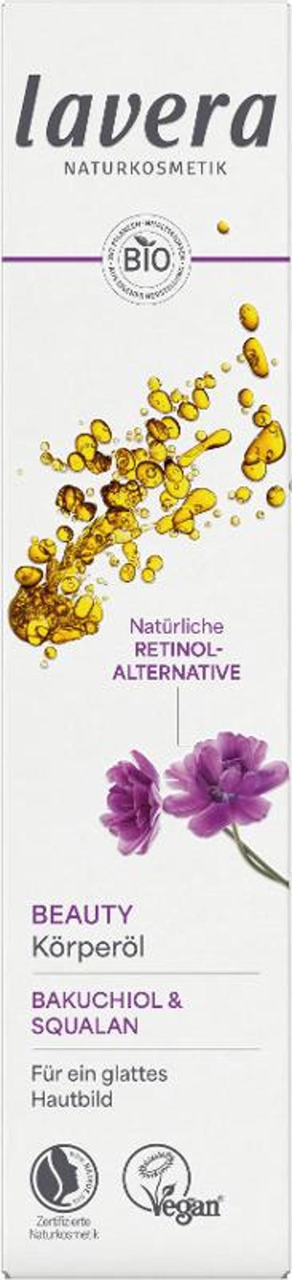 Mit den lavera Körperölen möchten wir dich inspirieren, dir etwas Gutes zu tun. Entwickelt fu-r kleine Wellness-Momente und nachhaltige Pflege-Rituale. Wohltuend. Duftend. Entspannend.Und voll gepackt mit natu-rlichen Wirksstoffen. Fu-r Sinne, Seele und fu-r deine Haut.FühlenEffektvolle Pflege Strahlend glattes Hautbild Leichte Textur, die schnell einzieht WissenFeuchtigkeitsbewahrende Formel mit Sheaöl undkaltgepresstem Bio-InkanussölHochwirksames Bakuchiol und Squalan für mehr Hautelastizität Unterstützt das hauteigene Kollagensystem*Natürliche Power-Wirkstoffe aus der Gesichtspflege für den Körper*in vitroAnwenden Du-nn auftragen und sanft in die noch feuchte Haut einmassieren.IntensivierenDas Körperöl lässt sich mit allen unseren Body Lotions mischen. Bei sehr trockener Haut einfach einige Tropfen Öl in die lavera Lotion deiner Wahl geben.Für alle HauttypenBakuchiol Die milde, vegane Alternative zu Retinol unterstu-tzt den Aufbau des Kollagensystems* der Haut. Besonders gut verträglich. Wirkt ausgleichend auf den Hautton. Sorgt fu-r intensive Spannkraft.*in vitroSqualanEin natürlicher Schutz vor Feuchtigkeitsverlust. Squalan zieht schnell ein und trägt dazu bei, dass die Haut elastisch bleibt.SheaölSeine intensiv pflegenden Eigenschaften schu-tzen die Haut vor dem Austrocknen und machen sie geschmeidig. Es bindet Feuchtigkeit an der Oberhaut.Bio-InkanussölNoch mehr Elastizität. Reich an Vitamin E, unterstu-tzt Inkanussöl ein strahlendes und gesundes Hautbild.Mehr zu unseren Körperölen gibt's hier: www.lavera.deIn unseren lavera Laboren arbeiten wir mit besten Bio-Inhaltsstoffen. Immer auf der Suche nach Formulierungen, die die Kraft und Intelligenz der Natur in wirksame und verträgliche Kosmetik u-bersetzen.