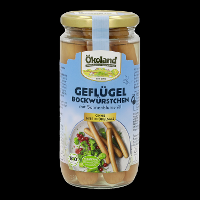 Die Verarbeitung des hochwertigen Bio-Fleisches und der geschmackvollen Bio-Gewürze erfolgt nach strengen Qualitätsrichtlinien. Auf Zusatzstoffe wie z.B. Nitritpökelsalz oder Phosphate verzichten wir aus Überzeugung. Die Würstchen sind in Eigenhaut, dies bedeutet, dass die Wurstmasse zu Beginn in einen Cellulosedarm gefüllt wird. Im Verlauf der Produktion mit dem Brühen und Räuchern bildet sich an der Oberfläche eine Eiweißschicht, der Darm wird vor dem Abfüllen in das Glas entfernt und fertig ist das Würstchen in zarter EIgenhaut.  Laktosefrei, Glutenfrei.