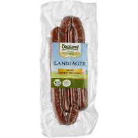 Die Landjäger aus Bio-Schweine- und -Rindfleisch sind herzhaft gewürzt und im Buchenholzrauch geräuchert. Der Salami-Snack ist eine landesweit beliebte Spezialität aus Süddeutschland. Unsere Landjäger sind eine leckere Ergänzung zum Pausenbrot, für's Picknick oder schmecken auch einfach mal zwischendurch.