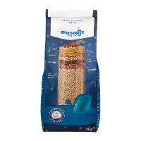 HAFERflocken** 54%, Kakao-Monde* und -Sterne* 14% (WEIZENvollkornmehl*, WEIZENmehl*, Vollrohrzucker*, Kakaopulver*, Honig*, Meersalz, Bourbon