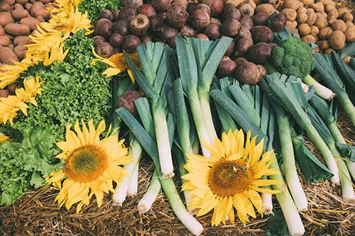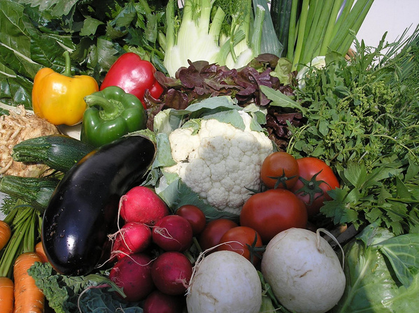 Radies, Salate (Eichblatt, Kopfsalat, Batavia, Pflücksalat, Asia, Postelein, Salatrauke, Feldsalat), Spitzkohl, Wirsing, Fenchel, Rote Bete, Sellerie, Staudensellerie, Dicke Bohnen, Petersilie, Schnittlauch, Salbei, Thymian, Pimpinelle, Sauerampfer, Liebstöckel, diverse andere Kräuter, Brokkoli, Mairübchen, Blumenkohl, Möhren, grüner Blumenkohl, Zuckermais, Grünkohl, Rosenkohl, Porree, Endivien, Zuckerhut, Radicchio, Steckrüben, Superschmelzkohlrabi, Winterblumenkohl, Mangold, Gurken, Auberginen, Basilikum, Tomaten, Kartoffeln (Frühkartoffeln Gloria; festkochende: Annabelle, Forelle, Allianzs, Linda; vorwiegend festkochend: Gloria, Laura; mehlig: Augusta, Gunda).